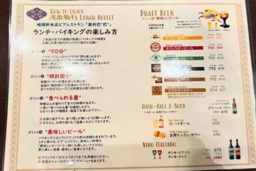 平日ランチバイキングは90分制で大人1人2,950円でした。今回は平日水曜日で入店時刻は12:47です。
