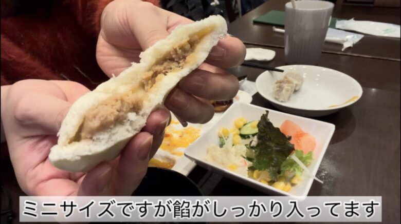 ミニ肉まんはこんな感じで皮に甘みがあって美味しい♪