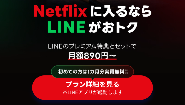 例えば、広告つきスタンダード(890円)を選べば、Netflixの豊富なコンテンツを楽しむついでに、LINEのプレミアム機能がフル活用可能。