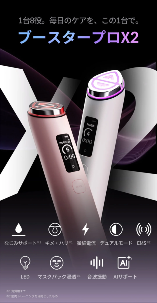 ちなみに最近は後継機の『Medicube AGE‑R Booster Pro X』も登場していて、「マスクモード」が追加されたのが気になっています。