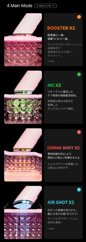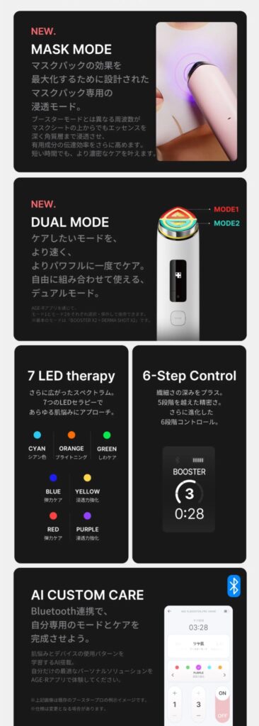 ブースタープロ1台で複数の肌ケアに対応する多機能モデル。