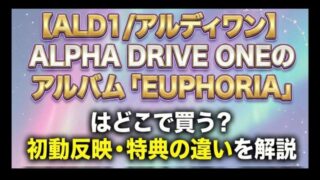 ALD1 【ALD1/アルディワン】ALPHA DRIVE ONEのアルバム「EUPHORIA」はどこで買う?初動反映・特典の違いを解説 ZB1(ゼベワン)のデビューアルバムをどこで買うのがいいか悩んでる方必見!初心者でもわかるおすすめの購入先を紹介します。「特典」や「初動」についてもわかりやすく解説しているので、「トレカ(ポカ)の種類が知りたい」「初動(チャート)ってなに?」という方はぜひ参考にしてください。 2025.12.10 ALD1その他エンタメ推す